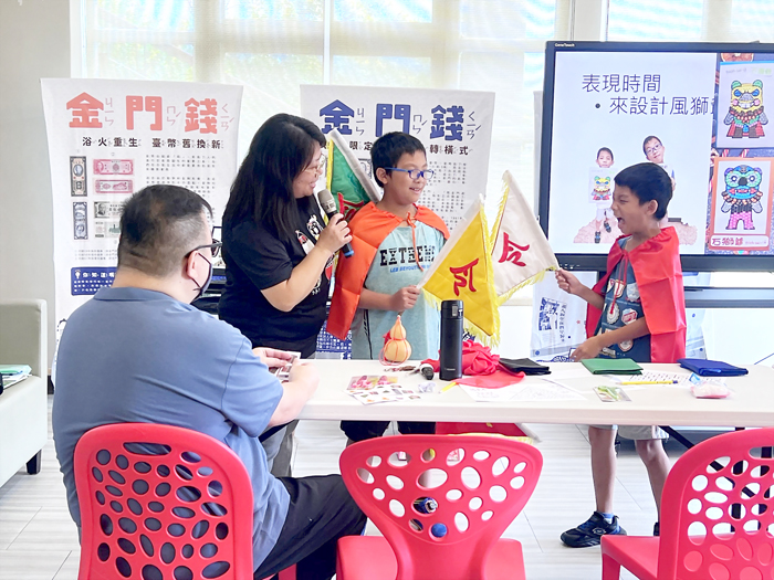 「閩風親子學堂」金門話說故事系列活動,7月12日開跑,上、下午場次由古城國小校長薛奕龍,以及黃嘉慧兩位講師到場分享,分別透過石獅爺主題益智遊戲等以及《佮阿公踅菜市仔》繪本,引領學員在遊戲以及互動中開口學說金門話。為響應文化部推廣金門在地母語的政策,由文化局主辦、金門縣文化園區管理所承辦之「閩風親子學堂」金門話說故事系列活動,7月份共計8場活動,主辦單位希望藉以推廣及傳承金門話,讓語言學習更貼近家庭、社區與日常生活,因此活動規劃透過說故事、讀繪本等生動活潑的教學形式進行,讓與會民眾或是親子,一起學習金門話並將其帶入日常生活中,作為生活中的自然語言。「閩風親子學堂」金門話說故事系列活動,上午場次講師為古城國小校長薛奕龍,主題「咱的話講金門的石獅爺文化」,透過石獅爺主題翻摺卡益智遊戲、彩繪圖卡等,帶領學員在參與中學習用金門話說故事,也藉由大小朋友熟知的石獅爺引導,讓大家更深入了解金門在地文化。另外,下午場次邀請黃嘉慧老師擔任講師,結合《佮阿公踅菜市仔》繪本,讓學員練習說出菜市場常見蔬果的金門話正確的讀音。課程也搭配蝶谷巴提袋DIY,民眾滿載收穫而歸。文化園區管理所指出,歡迎對金門話有興趣的民眾,踴躍報名參加,7月場次報名網址:https://reurl.cc/89nW3j或掃描QR code(如下圖),每場限額15人,額滿為止。